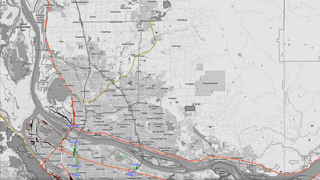 PVJR leases 33 miles of railroad from Clark County, Wash. between Vancouver and Chelatchie. Its interchange with BNSF (on BNSF’s Seattle Subdivision) is four miles north of Portland, Ore. in Vancouver, a short distance away from the Port of Portland and Port of Vancouver. The railroad also has access to I-5 and I-205.