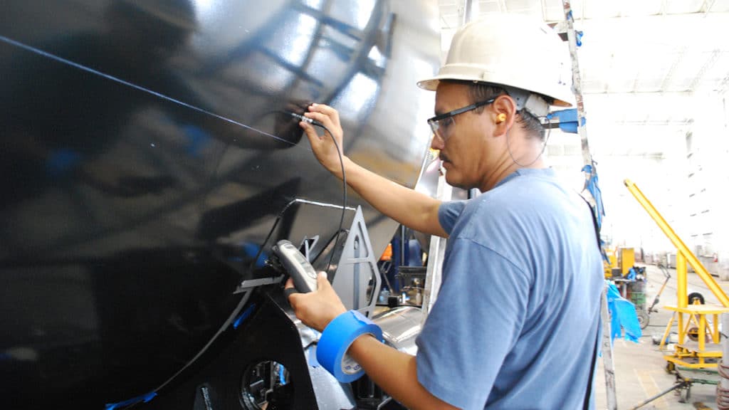 DOT’s hazmat regulations require that tank car owners maintain a qualification and maintenance program that specifies where, when, how and what to inspect certain components. These include the tank heads, shells, nozzles, saddles, sumps, certain service equipment and select safety systems. These parts are typically referred to as the “Hazmat Package.” Most of these inspections are performed by utilizing NDT (nondestructive testing).