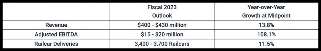 The railcar manufacturer on May 8 reported financial results for the three-months ended March 31, 2023.