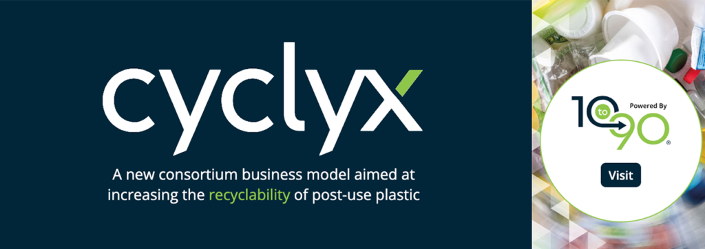 Cyclyx International, LLC describes itself as “a post-use plastic innovation company working with industry participants to develop innovative recycling solutions for all types of post-use plastics. The company’s 10to90® mission brand is focused on increasing the recyclability of plastics from 10% to 90%. Cyclyx’s expertise in the chemical composition of post-use plastic, in collaboration with industry partners, creates a new, innovative supply chain. Cyclyx has been formed to be a consortium-based entity, and since its founding, a growing number of companies have joined.”