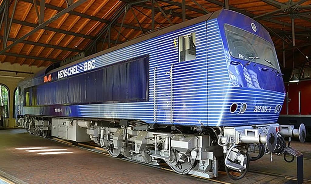 The first locomotive to successfully use an AC (alternating current) three-phase asynchronous traction motor drive system was the German DE2500 diesel-electric in 1971, built by Henschel-BBC. DB (Deutsche Bundesbahn) Class 202, an experimental C-C (six-axle) unit, had a frequency-controlled traction drive system with asynchronous traction motors and static converters, and was rated at 2,500 hp (1,900 kW).