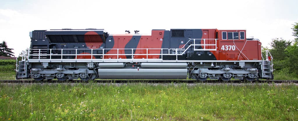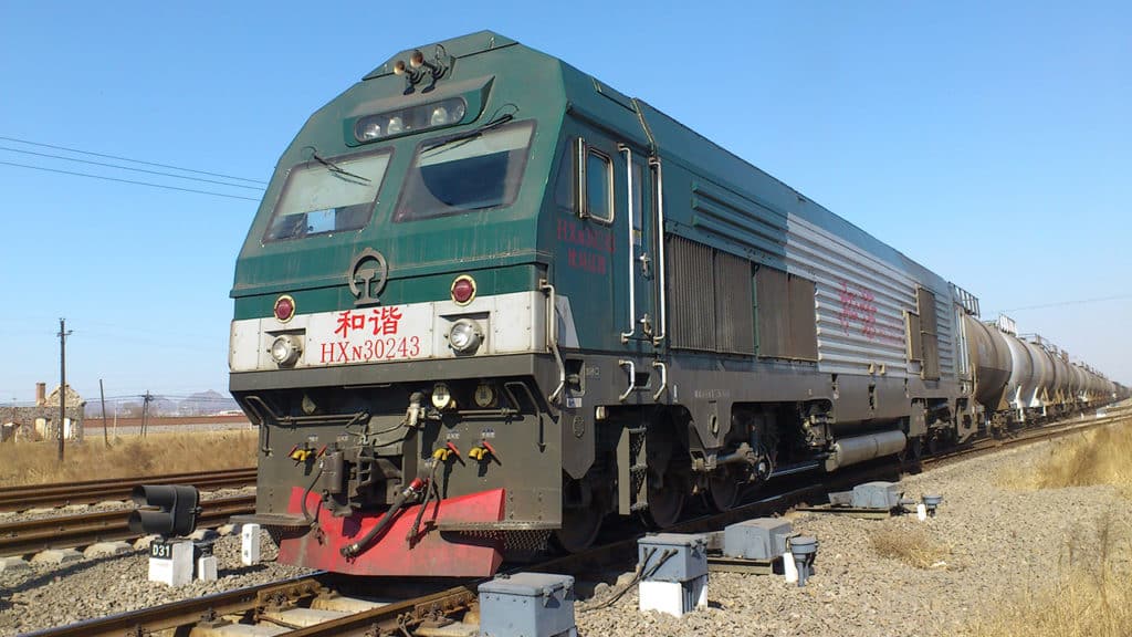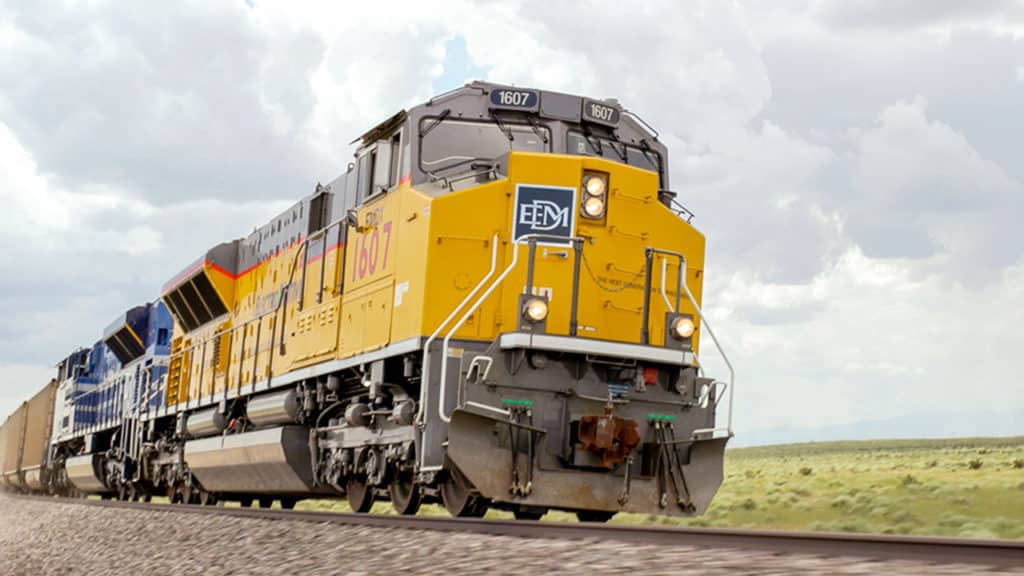 EFC’s most powerful locomotive is the Wabtec ES58ACi, which is equipped with a 6,000-hp GEVO16 diesel engine. Weight on rail is 195 tons, maximum speed is 110 kph (68 mph), starting tractive effort is 890 kN. The GEVO16 engine meets U.S. EPA Tier 3 standards only and is used on railways around the world whose comparative environmental standards are lower than Tier 4.