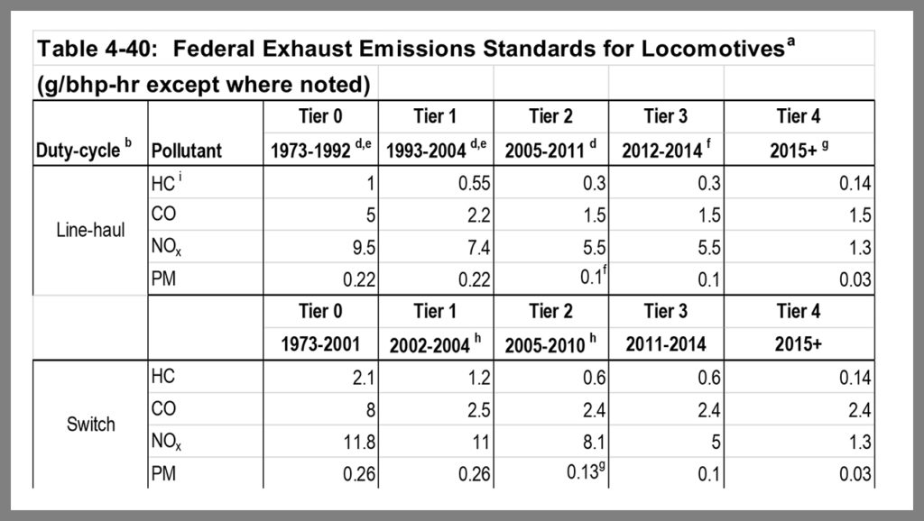 From the AAR fact sheet: “U.S. freight railroads, on average, move one ton of freight nearly 500 miles per gallon of fuel. On average, railroads are three to four times more fuel efficient than trucks.” Yet we continue to lose market share. The fuel efficiency argument doesn’t pack the same punch it once did. Modern trucks are gaining steadily. We now need to focus on the overall value proposition—fuel efficiency, service, timeliness, cost—and drive down the rail industry’s impact on GHG emissions along with localized NOx and PM. That means utilizing far more clean/cleaner diesel locomotives longer. Delaying the implementation of Tier 4 locomotives signals that U.S. railroads have not prioritized emissions, and potentially invites further backlash from CARB and the EPA, something we don’t wish for.