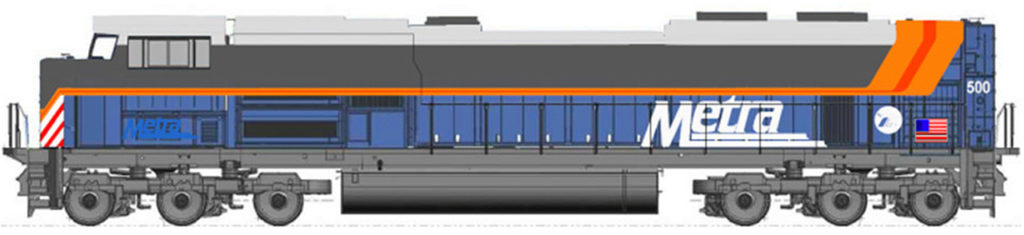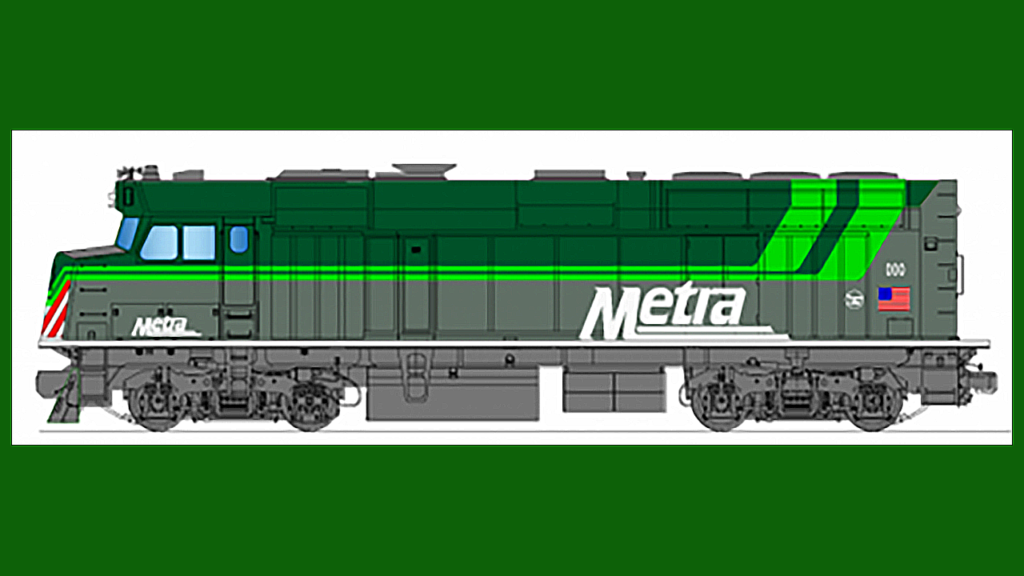 Metra said it has taken other recent steps to reduce its diesel emissions. The agency plans to purchase six switcher locomotives that meet Environmental Protection Agency (EPA) Tier 4 emissions standards and one battery-powered switcher. It has ordered from Progress Rail 15 remanufactured locomotives that meet EPA Tier 3 standards, with an option to buy up to 27 more, to replace Tier 0 emissions locomotives currently in service. The first of those units (rendering below) is expected to be delivered before the end of the year.