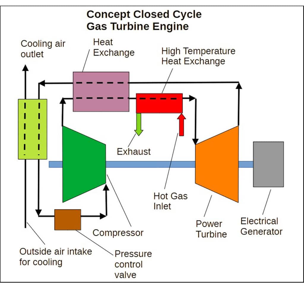 Engine developers who recognized the fuel efficiency problem of gas turbine engines developed alternative solutions that date back to the 1960s. One concept was externally heated closed-cycle gas turbine engines that continuously recirculate the same gas through compressors and turbine. While such engines can deliver high efficiency at 25% of power output, the materials of which heat exchange units were made at time incurred temperature restrictions that curtailed peak efficiency and peak power output. Lack of development of suitable heat exchange material resulted in stagnation in further development of closed-cycle gas turbine engines.