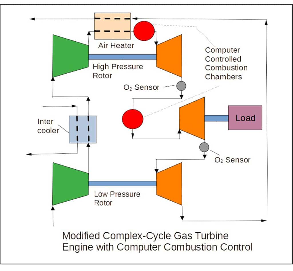Modern reciprocating internal combustion engines operate with advanced technology. Mass-flow rate sensors, air/fuel ratio sensors, air temperature sensors and computer managed fuel injection have greatly improved fuel efficiency. There is theoretical potential to adapt such technology to the old classical complex-cycle gas turbine engine, along with the possibility of introducing new-generation heat exchange technology that operates at much higher temperature and higher effectiveness than earlier generation technology. Modern annular counter-flow heat exchange technology developed by Ed Proeschel offers heat transfer effectiveness of more than 90% compared to 80% for earlier-generation counter-flow heat exchange units.