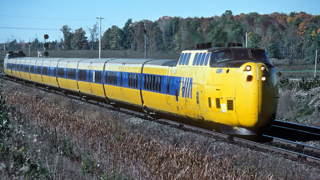 VIA United Aircraft Turbo Train 149 in October 1980. Wikimedia Commons/Roger Puta