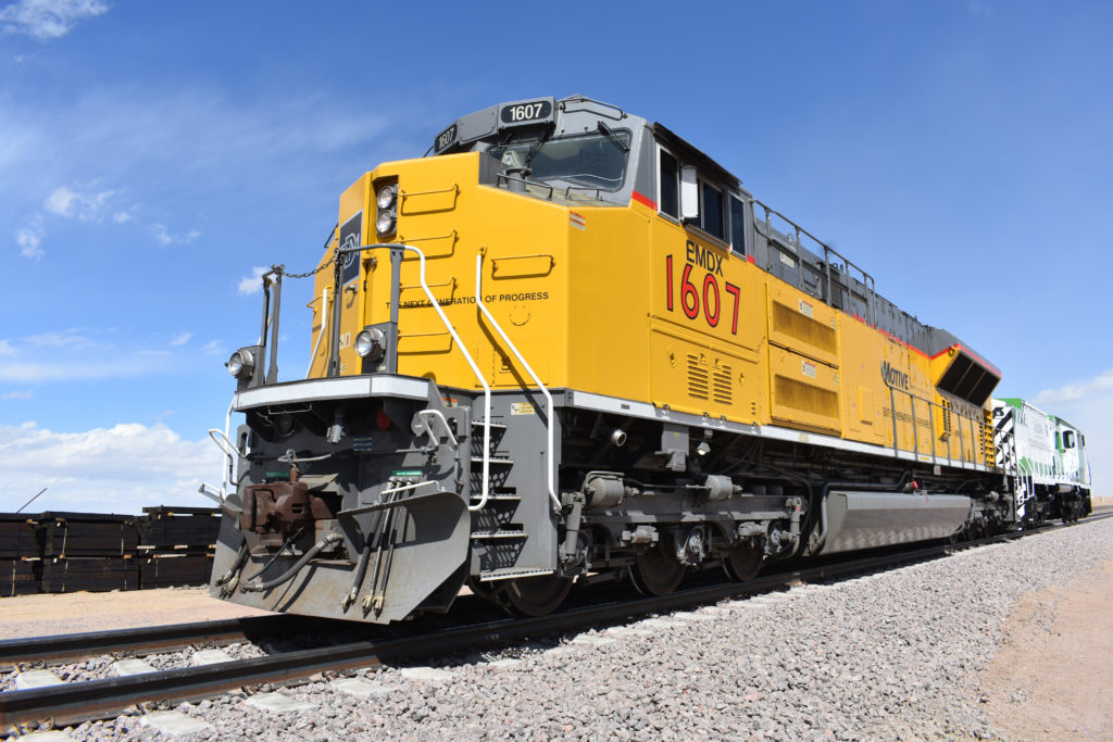 Locomotives with a horsepower rating of 4,000 or higher dominate among AC locomotives, which tend to be newer. Pictured: Progress Rail/EMD 6,000-hp SD90MAC at MxV Rail, Pueblo, Colo. (William C. Vantuono photo)