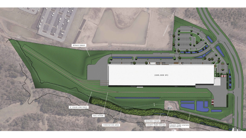 Hitachi Rail earlier this year selected a 41-acre site in Washington County, Md., to house a 307,000-square-foot factory, storage facilities and an 800-yard test track. (Rendering Courtesy of Hitachi Rail)