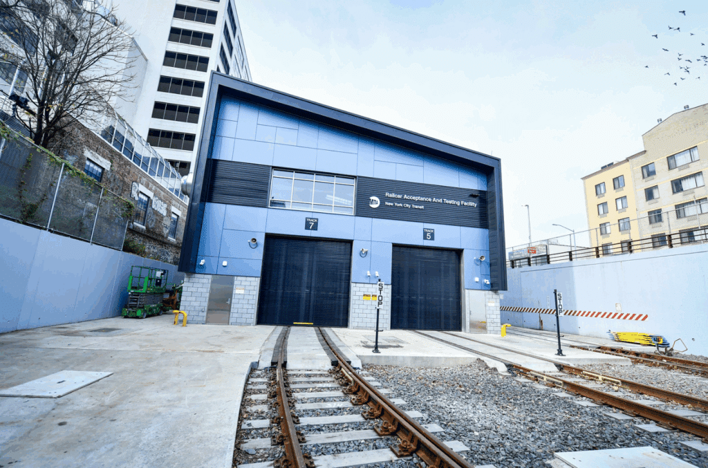 “The Railcar Acceptance and Testing Facility was completed within its three-year timeline and $5.5 million under budget by utilizing design-build delivery that streamlines project design and management,” MTA said. “The MTA realized significant savings through the use of prefabricated building components and precast concrete for the track pit construction, speeding the project’s completion and minimizing cost.”