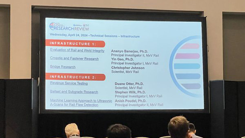 From April 23 to 25, MxV Rail hosted the 29th Annual AAR Research Review at the Pueblo Convention Center in Pueblo, Colo. Over the course of a few days, attendees had the opportunity to network, attend infrastructure and/or mechanical sessions, and attend a track walk at MxV Rail’s new FAST Loop.
