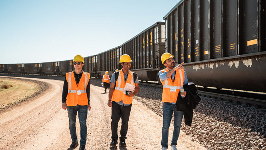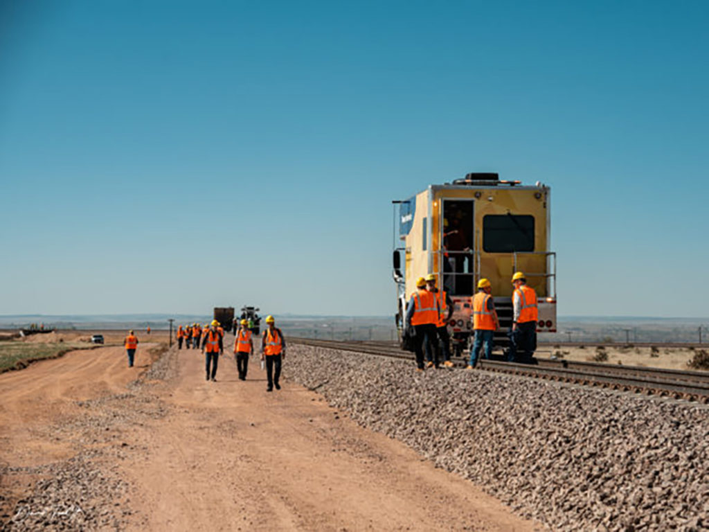 The next morning, Senior AVP Operations for MxV Rail Shawn Vecellio briefed the attendees on what to expect during the track walk. As soon as we were geared up with high-vis vests, safety glasses, and hard hats and fitted ourselves with steel-toe boots, we gathered onto buses to head toward MxV’s FAST Loop.