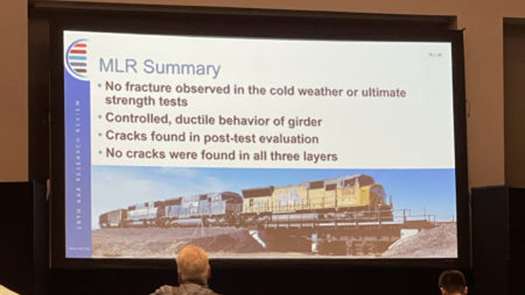 “Evaluation of Rail and Weld Integrity” from Banerjee focused on evaluating wear and fatigue of latest high strength and intermediate strength rails and effects of cold weather on rail performance. According to the presentation, no internal defects were observed in the head or base of any rails, but they did see weld breaks on low rail. Rolling Contact Fatigue (RCF) on low rail was caused by false flange contact.
