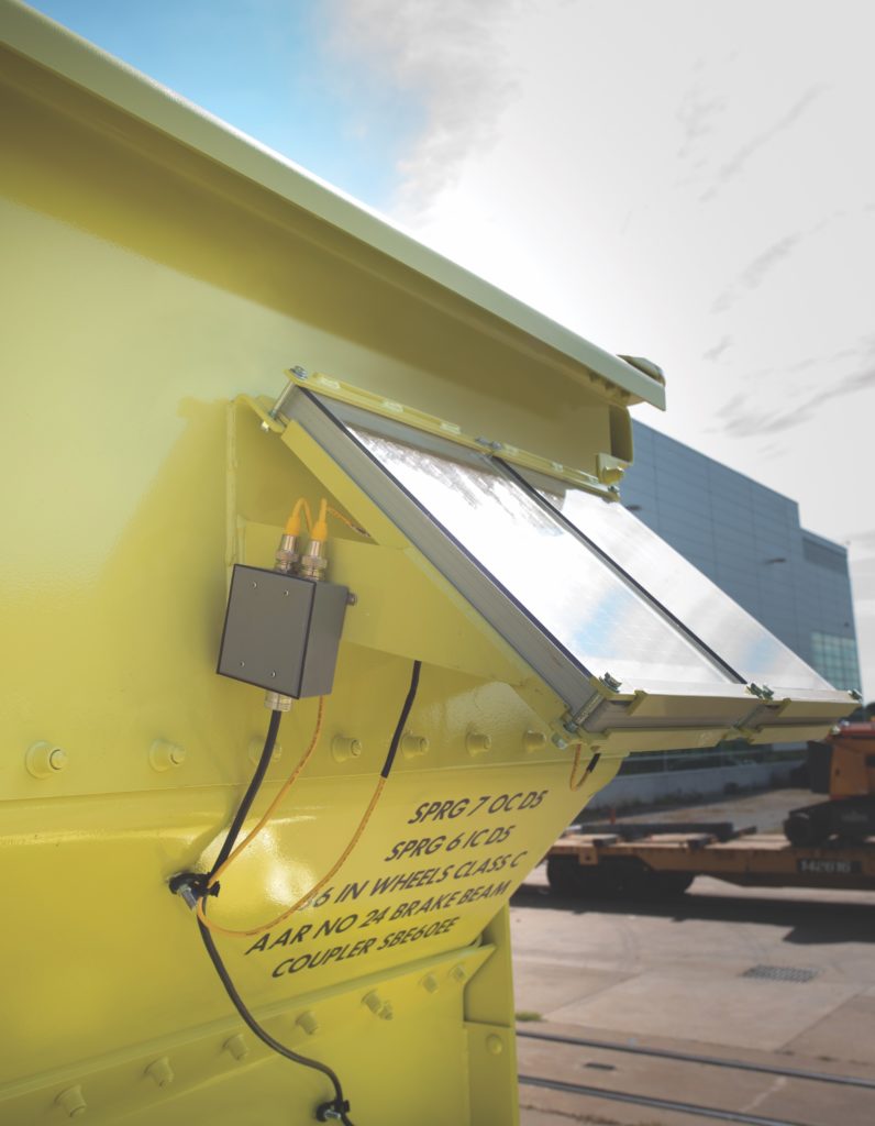 The new stand-alone, solar-powered Miner Lighting System features four energy-efficient LED lights mounted on the railcar’s under-carriage. Each system supports low-visibility and night-time ballast operations. The photovoltaic system includes a solar array, batteries, two switches and a lighting controller with a temperature compensation feature designed to ensure the system is properly charged in hot, as well as cold environments. The Miner Lighting System is available as a stand-alone system and as an option with all Miner ballast/MOW outlet gates and rapid discharge systems.