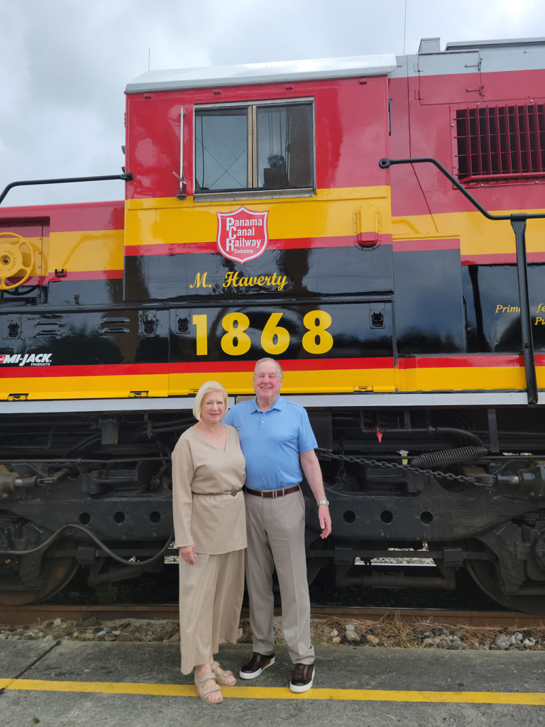 Editor’s Note: Tom Kenna, President of the Panama Canal Railway Company (PCRC), recently gave former Kansas City Southern President and CEO Mike Haverty and his wife Marlys a tour of PCRC headquarters. Mike (Railway Age’s 2001 Railroader of the Year) and Marlys were photographed with a locomotive named in his honor in 2002, and recently repainted. He recently wrote to me about his experience with creating PCRC around the same time as privatization of Mexico’s railway system was under way. — William C. Vantuono