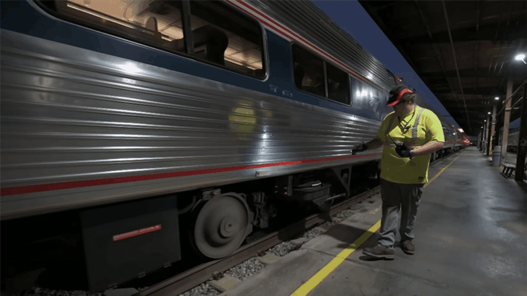 Led by two Siemens Charger locomotives, the train consist included a a “Bag/Dorm” car (a crew car), four Amfleet II cars used for long-distance trains running east of New Orleans and Chicago, two snack lounge cars with business class seats, a business class car, and Inspection Car 10004, American View.
