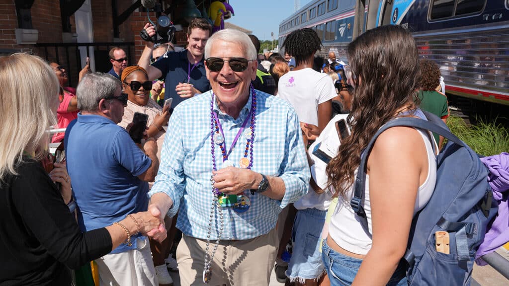 Until it was announced that the new trains would be called the Mardi Gras Service, nobody knew what name would be selected. The name seems to be an excellent choice, as the Mardi Gras celebration is one of the most popular events of the year along the entire route, especially at both ends of it. The phrase “Mardi Gras” means “Fat Tuesday,” the last opportunity to feast before Lent, a season of self-denial in the Catholic tradition, which begins on Ash Wednesday and lasts until Easter. The day caps off Carnival, a month-long celebration in the winter. Carnival is celebrated in warm places like Trinidad and Brazil, but the Gulf Coast features the American version of the celebration. New Orleans has the biggest and most famous celebratory season, but Mobile also celebrates it, and a rivalry between those two cities about who was first and who has the best celebration was a topic of conversation by local elected officials from both places during the Aug. 16 festivities. Biloxi has a Mardi Gras celebration, too, and all three cities have museums about their own versions of the event.