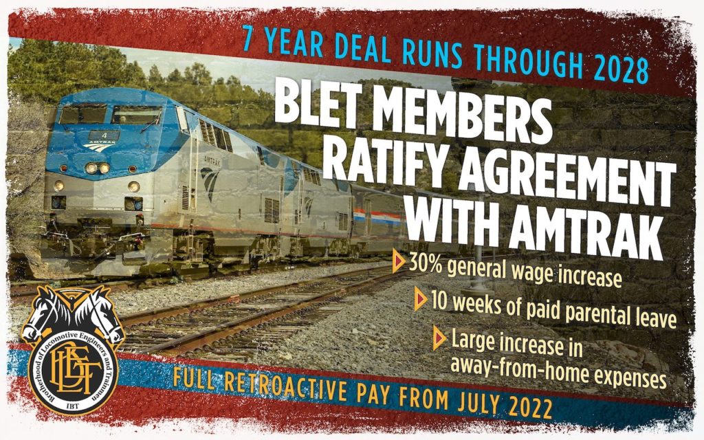 According to BLET, the contract provides full retroactive payments dating to July 1, 2022, and will run through 2028. Highlights of the deal include: