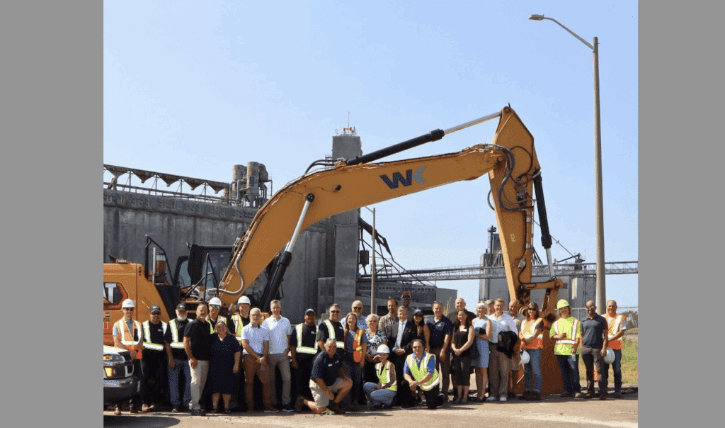 The groundbreaking drew attendees from across the agricultural, investment, and political spectrum, including MP Michael Barrett, Mayor Tory Deschamps, and Port GM Leslie Drynan.