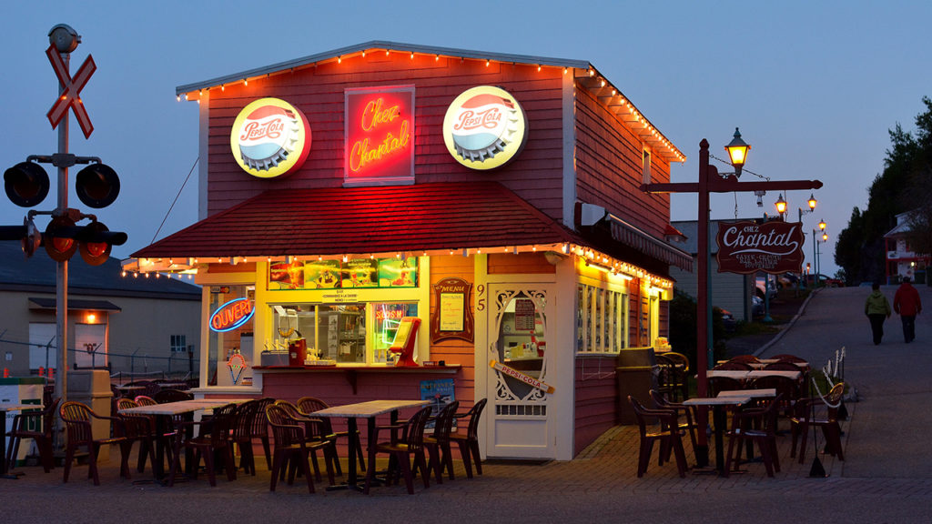 I did not see that part of the town as I stepped off the train for a one-hour visit. What I did see was a pleasant though not awe-inspiring neighborhood that featured a beach area, one that did not have the upscale appearance of the more-affluent parts of the Jersey Shore. Chez Chantal, the local snack shack sells fries, burgers, chicken, sandwiches, lobster rolls, and poutine, a mix of fries, cheese chunks and gravy invented in Quebec in the 1950s and now a Canadian “diner classic.”