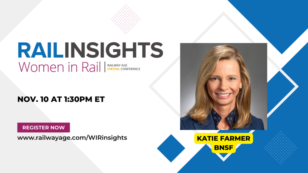 The 2022 Rail Insights: Women in Rail Conference, presented virtually beginning at 1:30 p.m. ET on Nov. 10, not only features Farmer, but also Corina Moore of Ontario Northland; Cindy Sanborn of Norfolk Southern; Beth Whited of Union Pacific; Laurie Dornan of The Greenbrier Companies; KellyAnne Gallagher of the Commuter Rail Coalition; Jean Savage of Trinity Industries, Inc.; Patty Long of the Railway Supply Institute; Barbara Wilson, formerly of RailUSA LLC; Jenny Bush of Cummins, Inc.; and Merritt Canfield of Meritus Executive Search.