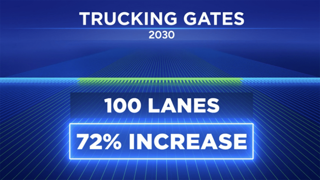 Counting improvements at Garden City Terminal and Ocean Terminal, as well as the planned development of the Savannah Container Terminal on Hutchinson Island, truck lanes at the Port of Savannah will grow from 53 lanes today to 100 lanes by 2030.