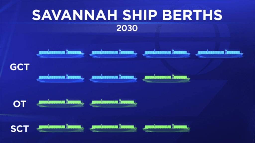 “With $4 billion in investments planned for Ocean Terminal and Savannah Container Terminal, Savannah will be a 12.5 million-TEU capacity port by 2035,” Lynch said.