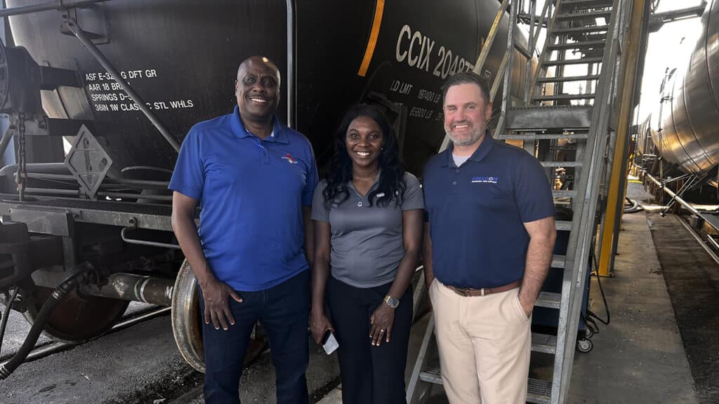 NOPB General Manager and Chief Strategy Officer Tomeka Bryant (center) and Freedom Intermodal Tank Services President Jeff Louis (right).