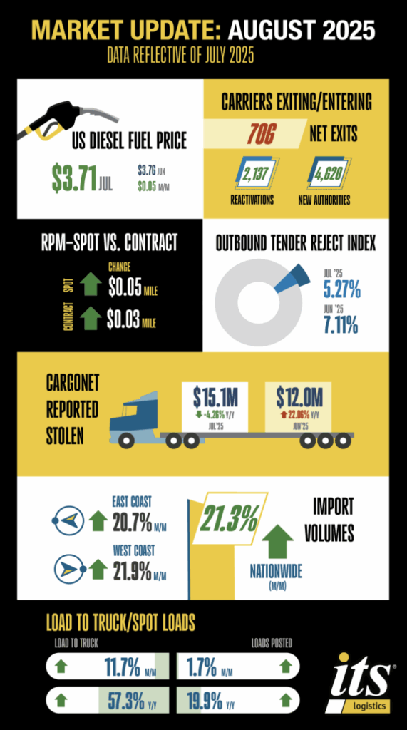 “While capacity has tightened with ongoing carrier exits, the real story is that cost pressures remain significant and freight rates, broadly, are still challenged—just barely covering the bills,” ITS Logistics Chief Commercial Officer Josh Allen said. “This isn’t broad-based recovery. The opportunities that exist are selective, shaped by tariff volatility and a shifting regulatory environment.”
