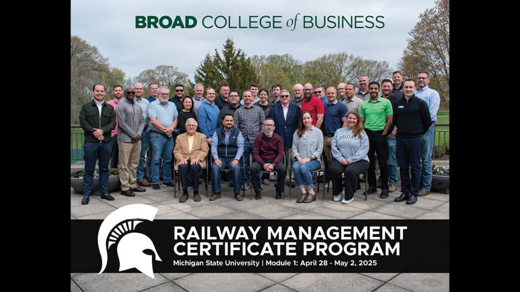 RAILWAY AGE, OCTOBER 2025 ISSUE: Michigan State University’s Center for Railway Research and Education, housed at the Broad College of Business, marked a major milestone in 2025 as it convened its 20th iteration of the Railway Management Certificate Program (RMCP). Established in 2007, RMCP has become the gold standard for rail leadership development, thanks to the support from industry visionary Ed A. Burkhardt. This year’s cohort is the largest ever, featuring 41 mid- and senior-level professionals from 27 freight and passenger rail organizations spanning 19 U.S. states and Mexico.