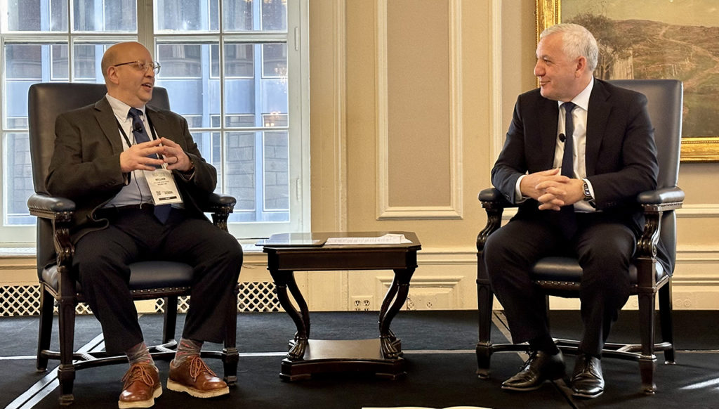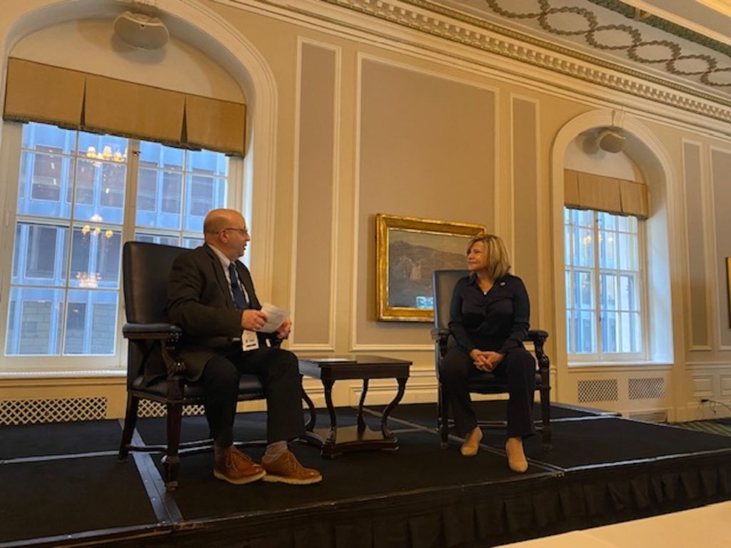 Beth Whited (left) sat down with Railway AgeExecutive Editor Marybeth Luczak to discuss her role as UP President, which she took on last summer. She not only shared how Jim Vena, UP’s new CEO, is different from other leaders she’s worked with in her 35-plus-year career at the Class I—he is bringing a new energy to the team and galvanizing it—but also her job overseeing the Washington, D.C., operations on legislation and regulation and UP’s role in decarbonization, including its alternative-fuel locomotives program and use of higher biodiesel blends. Additionally, Whited provided an update on the Phoenix Intermodal Terminal, which opened Feb. 1, and UP’s perspective on nearshoring and its investments to prepare to support additional volume. Both Whited and Vena stressed how UP’s focus on “safety, service and operational excellence” will help customers win in the marketplace.