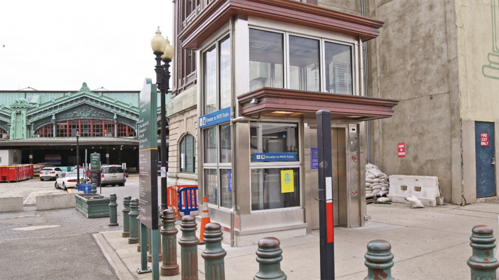 At PATH facilities, flood walls and barriers have been installed in locations that were inundated with water in the aftermath of Sandy. At the PATH Hoboken station, a resiliency project included the installation of a new steel frame elevator with flood-rated glass and flood doors at stairway entrances. At the PATH Exchange Place, Grove Street, and Newport stations, exterior flood walls and internal, aquarium glass walls, and flexible fabric barriers have been installed to protect against the coastal flooding that had caused severe damage during Sandy. At the Harrison station, the entrance plaza and fare equipment were elevated in anticipation of rising sea levels.
