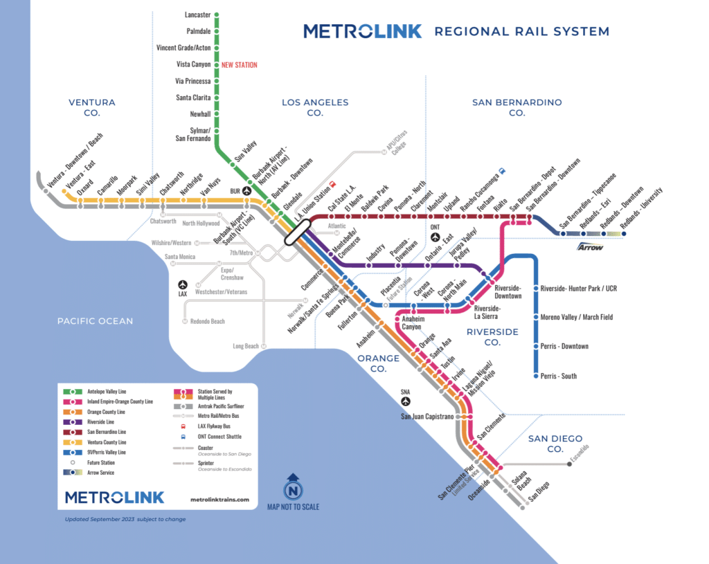 Kevin Gray is the new Chief Technology Officer at Metrolink, a regional passenger railroad that has 545.6 total service line miles and 67 stations spanning Los Angeles, Orange, Riverside, San Bernardino, Ventura, and San Diego counties (see map above).