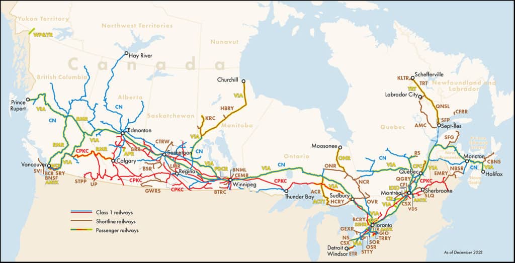 In 2023, Canadian railways “invested C$2.9 billion to improve the safety, efficiency, capacity and fluidity of Canadian supply chains,” RAC said. “Canada’s railway safety performance has been exceptional. Compared to 2022, the total number of accidents decreased by 8.5%, the passenger train accident rate improved by 52.4%, the freight train accident rate improved by 7.7%, and the dangerous goods accident rate decreased by 15.9%. The railways created 2,000 direct jobs, and the representation of women, persons with disabilities, visible minorities and Aboriginal peoples increased. Passenger train ridership has recovered, as commuter numbers increased by 70.5% and intercity passengers have increased by 30.7%, reducing congestion on public roads. Taxes and duties paid by the sector exceeded C$2.5 billion.”
