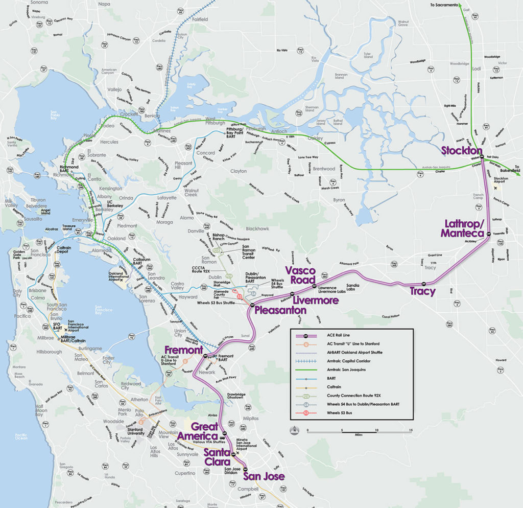 The San Joaquin Regional Rail Commission’s (SJRRC) ACE Rail Maintenance Facility will house the new Rail Academy of Central California (TRACC), which is seeking 70 students for instruction and hands-on-training. An open house was held earlier this month to generate interest and attract talent, according to SJRRC, the owner, operator and policy-making body for Altamont Corridor Express (ACE), which comprises an 86-mile corridor between Stockton and San Jose with 10 stations (see map below). Federal, state and local officials; railroad industry stakeholders; and prospective students and their families were in attendance.
