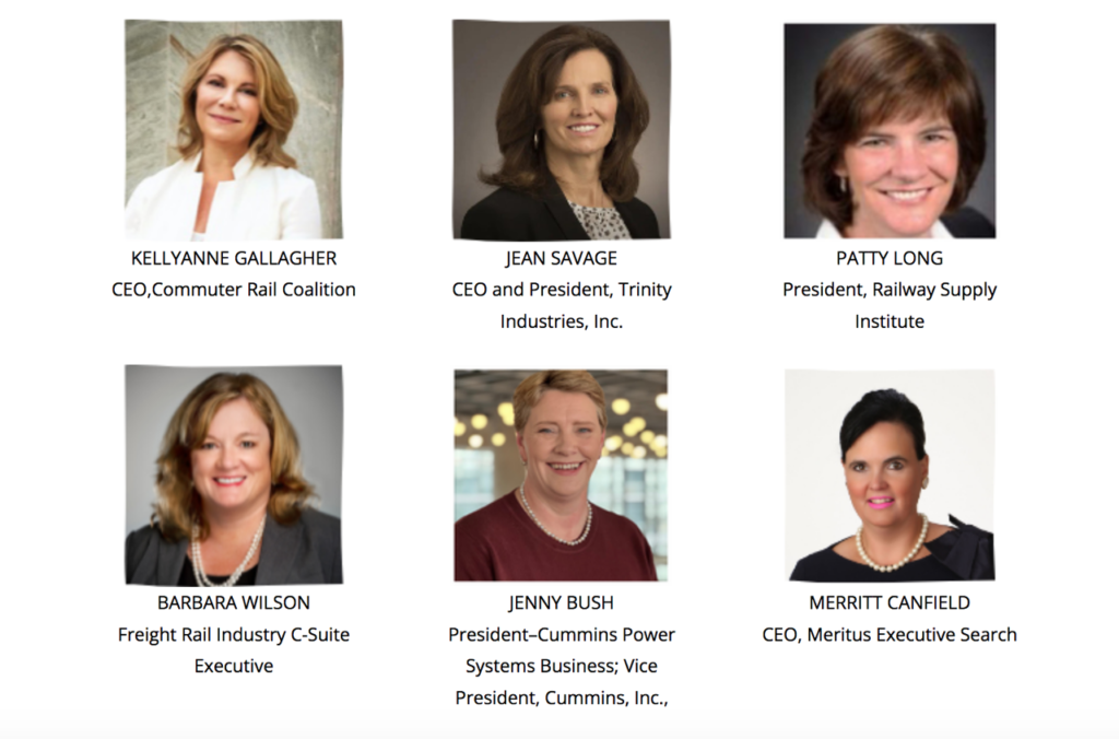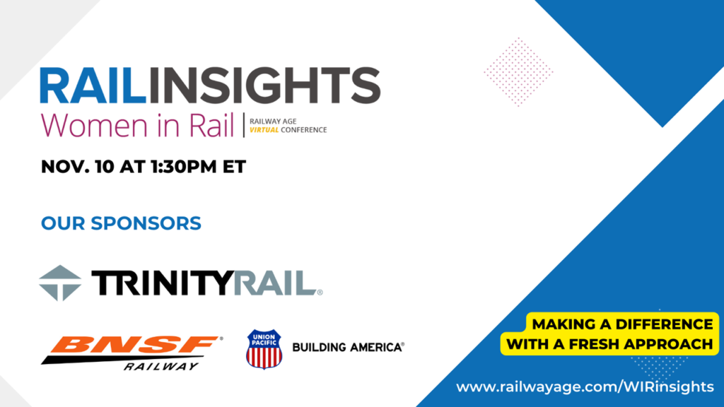 The lineup of speakers includes Katie Farmer of BNSF; Corina Moore of Ontario Northland; Cindy Sanborn of Norfolk Southern; Beth Whited of Union Pacific; Laurie Dornan of The Greenbrier Companies; KellyAnne Gallagher of the Commuter Rail Coalition; Jean Savage of Trinity Industries, Inc.; Patty Long of the Railway Supply Institute; Barbara Wilson, formerly of RailUSA LLC; Jenny Bush of Cummins, Inc.; and Merritt Canfield of Meritus Executive Search. They’ll engage in informal, “fireside chat” style conversation with Railway Age Executive Editor Marybeth Luczak and Senior Editor Carolina Worrell.
