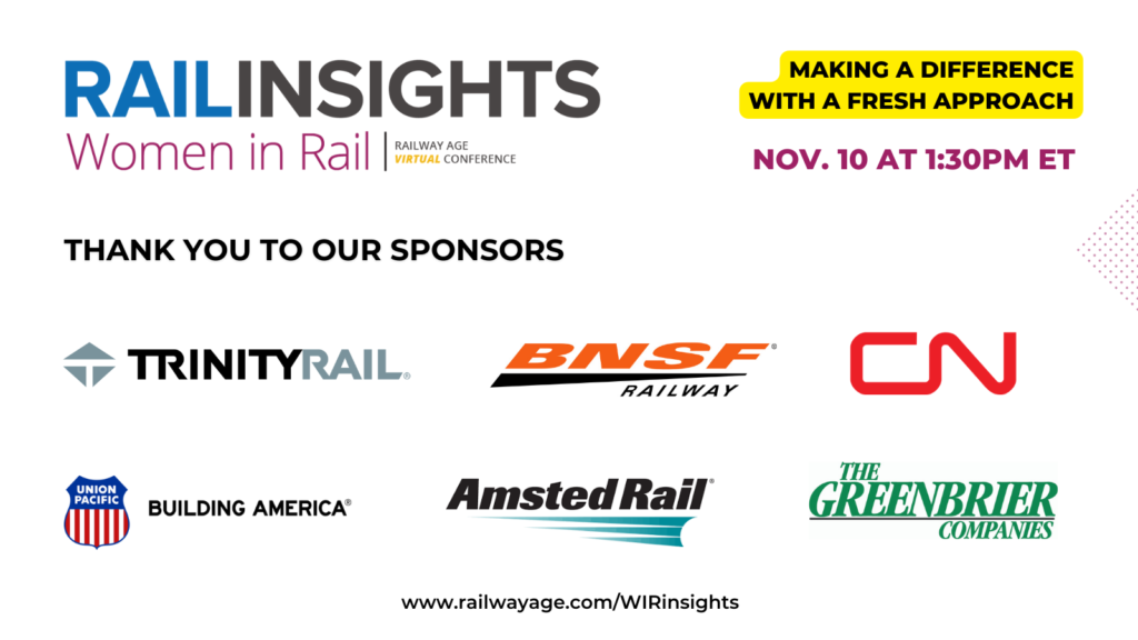 • Register for 2022 Rail Insights: Women in Rail Conference, a Railway Age virtual event, to be held Nov. 10, 1:30 p.m.-4:30 p.m. ET.