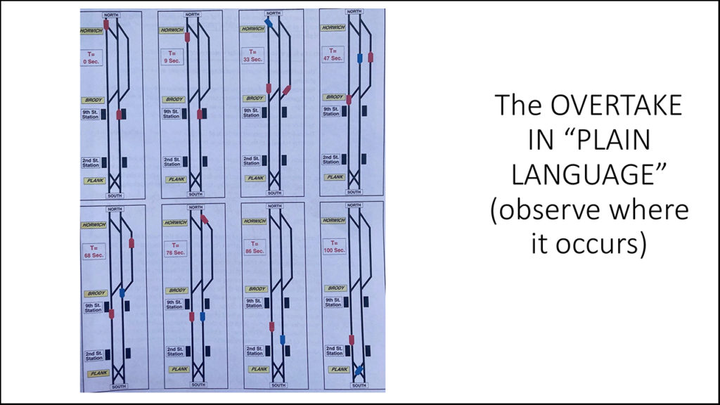There is also “Three Roads,” a short three-track segment north of Hoboken, where Fazio described how overtakes are staged. They are set up on the three-track segment, but they occur on a two-track segment immediately north or south of it. He said that pairs of parallel moves at the wye optimized with asymmetrical headways make the overtakes possible, and showed a video that depicted the operation.