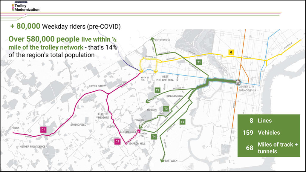 Corbett then turned to economic aspects of light rail in New Jersey and described the HBLRT as “one of the largest public works projects in New Jersey.” He said it was the first DBOM (Design, Build, Operate and Maintain) project, which changed the area along the line from “a working waterfront to a development with 10,000 new apartments.” Yet he noted that there was “not one single dollar in value capture” from that development and called for legislation to correct that situation. He mentioned two projects in the works: a one-stop extension of the HBLRT to Route 440 on Jersey City’s West Side and a line between Camden and Glassboro in South Jersey that would connect with the existing River Line between Camden and Trenton. He called for more “accessibility and equity” and more resilience against future storms, as well as technical advances that would turn seats into “mobile data centers.” He concluded by expressing concern about the fiscal cliff that NJT and other providers will face when the federal COVID relief money runs out, a fear also voiced by rider-advocates and some elected officials.