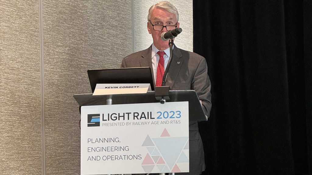 NJT President and CEO Kevin S. Corbett kicked off the conference with the keynote address. He looked back to a time when the agency was “hollowed out and severely underfunded for a decade,” an era characterized by a shortage of engineers and trouble getting Positive Train Control (PTC) installed by the statutory completion deadline. He said, “We’ve come a long way” and mentioned capital projects and the ridership recovery since the COVID virus hit. He noted that rail ridership was back to 70% of pre-COVID levels, while ridership on weekend trains is now at or above pre-COVID levels, an observation also made by reporters and local advocates in other forums. He also mentioned NJT’s three light rail lines, which were discussed in greater detail during the presentations that followed.