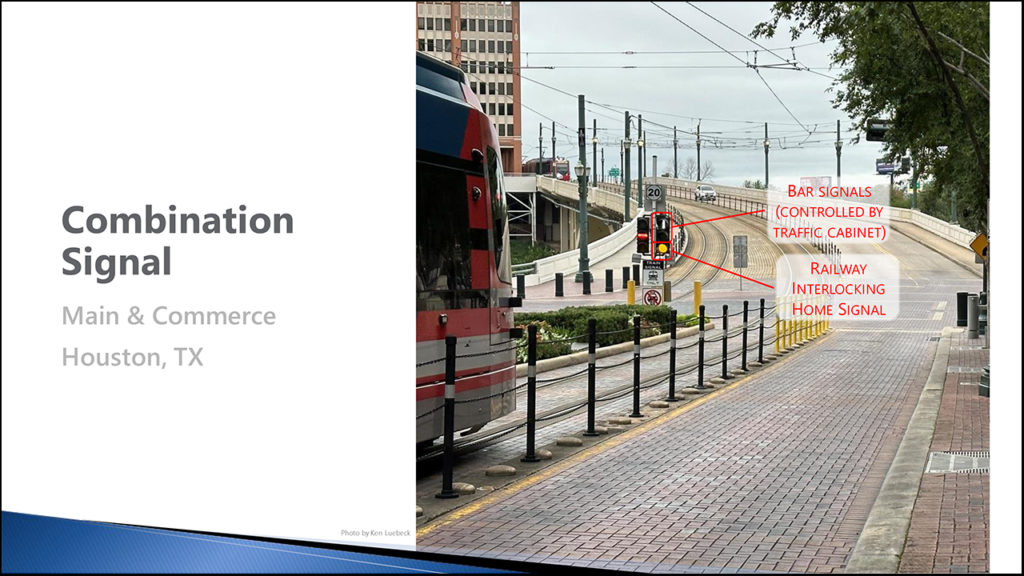Next on the program was a panel from Houston Metro, about the technical aspects of Unified Signals for Street-Running LRT. The main theme of the session was integrating traffic signals with railroad interlockings for the rail line. Ken Luebeck, a Public Project Manager for Benesch who had worked on projects at Metro, described several different types of signal configurations, while saying that attempting to integrate the two was like attempting to force the proverbial round peg into a square hole. He also described the current Houston system, which combines rail and auto signals as a married pair.