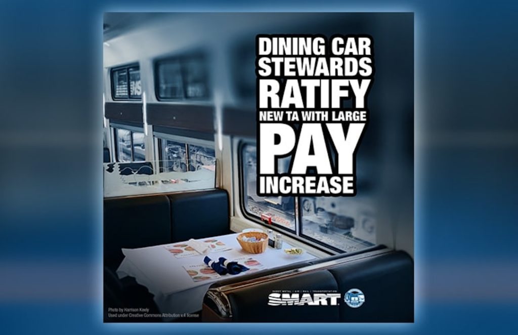 Dining Car Stewards represented by the International Association of Sheet Metal, Air, Rail and Transportation Workers – Transportation Division (SMART-TD) have voted unanimously to ratify a tentative agreement with Amtrak spanning seven years from July 1, 2022, through Dec. 1, 2028.