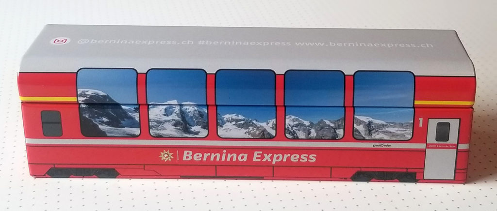 All of which sets the stage to introduce the Bernina Express’s specially built, unsurpassed and truly exhilarating observation cars, or “panorama cars,” as they’re known in Europe. Swiss timetables have recently started including a small graphic for any train with observation cars: an open triangle with its top blacked in. I’m not sure of the symbolism here—maybe not as obvious as a crossed knife and fork for a restaurant car—but after a ride on the Bernina Express, I can see that this logo needs refinement. There are observation cars and then there are Bernina observation cars, which deserve at least an “!” or perhaps a halo or a thunderbolt.