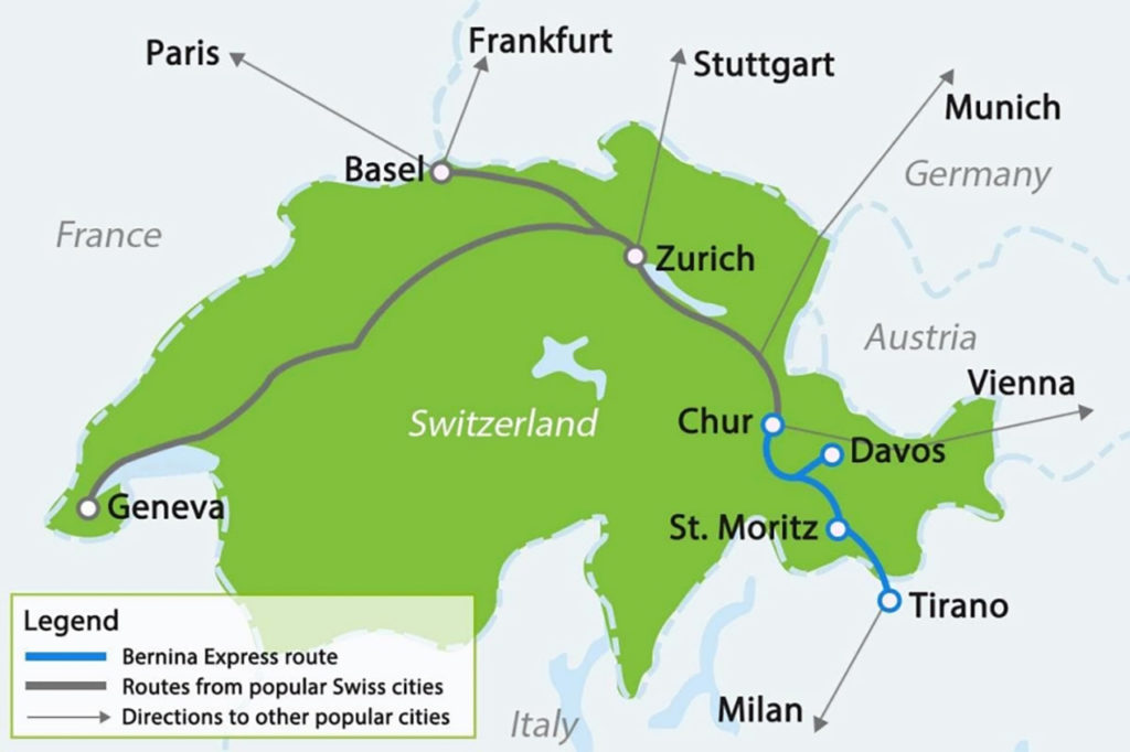 Yes, the Bernina Pass through the Alps is spectacular. In less than two and a half hours, the Bernina Express first ascends to the pass’s summit, climbing 2,100 feet, or higher than One World Trade Center in Manhattan, before descending about 6,000 feet, or nearly the depth of the Grand Canyon—it’s become something of a travel writing cliché to call this drop a “glaciers to palm trees” plunge.