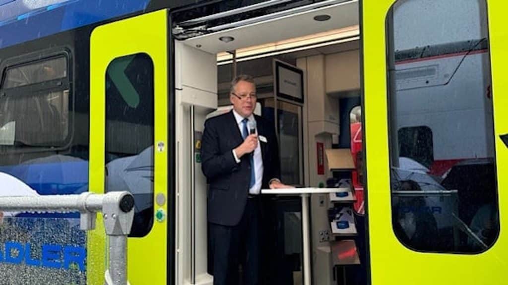 Stadler launched its new RS Zero battery/hydrogen-powered successor to the Regio Shuttle DMU at InnoTrans on September 24 and during the presentation, Stadler’s Vice-President for Marketing and Sales, Dr. Ansgar Brockmeyer, announced a trial contract for use of the prototype starting next year.