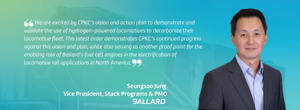 “Our hydrogen locomotive program demonstrates our commitment to reduce greenhouse gas emissions and we are pleased to continue to work with the team at Ballard to implement effective alternative fuel solutions,” said CPKC AVP Operations Technology Dr. Kyle Mulligan.