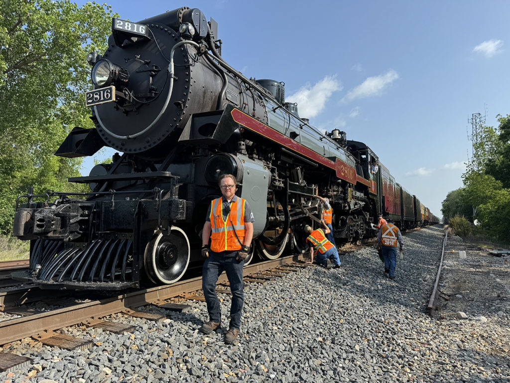 During more than three decades at Railway Age, I’ve enjoyed numerous cab rides on all types of equipment, diesel and electric, in North America and Europe. So far, the one I experienced, with my wife by my side, aboard 2816 on the former Kansas City Southern Pittsburg Subdivision between Amsterdam and Pittsburg, Mo., during the Kansas City-Shreveport segment of CPKC’s Calgary to Mexico City Final Spike Anniversary Steam Tour tops them all. And yes, we both got to blow the steam whistle (insert huge smile). It’s one of those life experiences that stays with you. (Video below.)