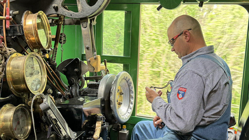 Fireman Justin Tracy, CPKC Senior Manager, Heritage Mechanical and Steam. William C. Vantuono photo.