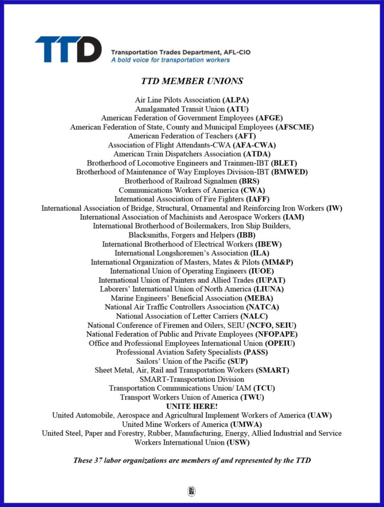As we have stated before, there is no shortage of ready and willing workers in this country. That is a myth compounded by the reality that employers are driving working people away from jobs by constantly attacking wages and good benefits, requiring increasingly difficult and grueling work schedules, and—as is the case of the Class I’s—outright elimination of positions. Enhanced data reporting is necessary to allow the STB to correctly diagnose and address the problems that the Class I railroads’ decision to eliminate so many positions has caused. As STB has indicated, the current service challenges have existed for many years. The harm that these challenges have caused to the rail network and rail shippers that warranted this emergency action has the potential to continue beyond the six-month period that the STB has proposed these reporting requirements. As such, TTD urges STB to evaluate the usefulness of data gathered under this collection to be in a position to possibly extend reporting periods should the circumstances warrant such an extension.