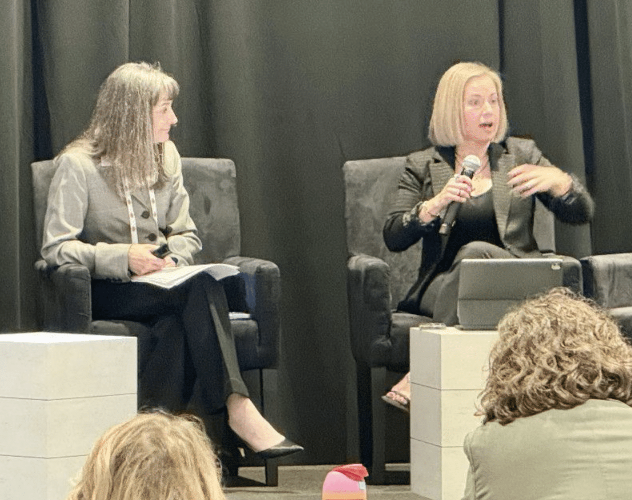 • How to manage a crisis, with Henrika Buchanan, Senior Vice President, National Practice Consultant, Transit & Rail Market Sector, HNTB. A 2024 Railway Age Women in Rail Award honoree, she is pictured (top right) with Carolina Worrell. (Photograph Courtesy of Lisa Tackach)
